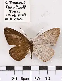 - ↑ Savela, Markku. "Allotinus sarrastes Fruhstorfer, 1913". Lepidoptera and Some Other Life Forms. Retrieved April 13, 2018.