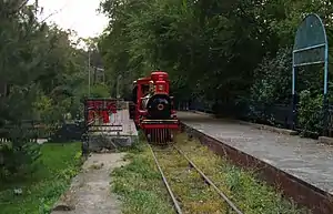 The Alma-Ata Children's Railway (Russian: Алма-Атинская детская железная дорога, romanized: Alma-Atinskaya detskaya zheleznaya doroga) is a narrow-gauge children's railway in Almaty, Kazakhstan, which was called Alma-Ata from 1921 to 1993. The main route of the track had a gauge of 750 mm (2 ft 5+1⁄2 in) and a length of 1.24 km (0.77 mi). It was inaugurated on 13 September 1952 as one of many pioneer railways in the Soviet Union and on 20 July 1997 it was temporarily decommissioned.[1] Since 2006 it has operated as a ridable miniature railway for entertainment rather than an educational purpose.[2]