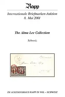 Auction catalogue for the sale of the Alma Lee Collection of Swiss stamps, May 2001.