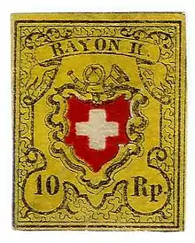 An 1850 Swiss Rayon stamp of the type that Lee attempted to plate (not from the Lee collection)