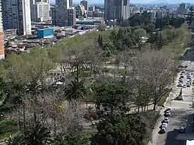 Almagro Park is an urban park in the city of Santiago, Chile. The Basílica de los Sacramentinos is situated on the east end of the park, while the Palacio Cousiño is located on its west end. The park marks the north end of the Paseo Bulnes. Parque Almagro metro station is named after the park and the Toesca metro station is located a short walk from the park. The park contains monuments to Pedro Aguirre Cerda, Luis Emilio Recabarren, and Diego de Almagro.[1][2]