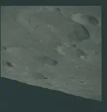Oblique view of Almanon, the satellite crater Almanon C and its surroundings including Geber and Azophi, Apollo 16 image