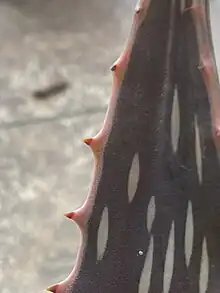 Aloe djiboutiensis is a plant that looks similar to many aloe species. It is slightly smaller than Aloe somaliensis. There are white streaks on the leaves, which are bubbles of gas that are below the epidermis. You can also very rarely get individuals that do not have those bubbles. It is believed that these help cool the plant in extreme temperatures as it rarely gets below 70F in their natural habitat. This has also caused the frost tolerance of this plant to be called into question in cultivation.[4]