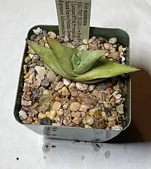 Aloe molederana is a plant that grows in limestone and gypsum. It is similar in look to many aloes, such as Aloe vera. It is a large aloe rosette.