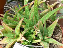Aloe sinkatana is a small, stemless Aloe native to Sudan.[2] The plant is sometimes confused for the more common, medicinal Aloe vera.