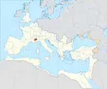 ![]() The Roman Empire ca. AD 125, with the province of Alpes Cottiae highlighted. | |||||||||
