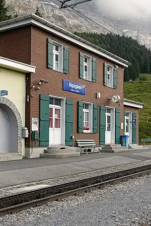 Alpiglen is a request stop railway station in the municipality of Grindelwald in the Swiss canton of Bern. The station is served by the Wengernalpbahn (WAB), whose trains operate from Grindelwald to Kleine Scheidegg. It takes its name from the nearby settlement of Alpiglen.[1][2]