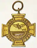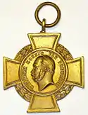 The Alsen Cross (German: Alsenkreuz) was a military medal of the Kingdom of Prussia. Established 7 December 1864, the medal commemorates the Prussian victory on 29 June 1864 during the Battle of Alsen. The medal was initially awarded with two different suspension ribbons, for combatants and noncombatants. It was subsequently extended to those troops held in reserve at the battle and members of the Johanniter Orden who participated in the battle.