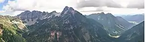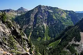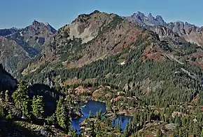 The Alpine Lakes Wilderness features some of the most rugged topography in the Cascade Range with craggy peaks and ridges, deep glacial valleys, and granite walls spotted with over 700 mountain lakes.[5] Geological events occurring many years ago created the diverse topography and drastic elevation changes over the Cascade Range leading to the various climate differences. These climate differences lead to vegetation variety defining the ecoregions in this area.