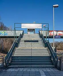 Since 1959, it was planned to open an S-Bahn line in the direction of Berlin Schönefeld Airport. Since a motorway junction was planned near the station, the route runs south of the station in a slight arc on the left hand side of the highway section. On 26 February 1962, the new station on the route to the airport went into operation. The roofless island platform had a small reception building with a ticket office.[3]