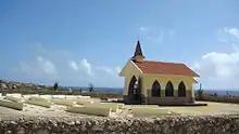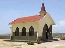Alto Vista Chapel is a small Catholic chapel that stands on the hills above the north shore of the sea and to the northeast of the town of Noord, on the island of Aruba, 27 km north of the coast of Venezuela. The church, painted on the outside in stark bright yellow, makes it a conspicuous religious monument for people to visit. The present Chapel of Alto Vista was completed in 1952 and stands in the same location as the original chapel, which was built by Domingo Silvestre, the Venezuelan missionary from Santa Ana de Coro, Venezuela, in 1750.[1][2][3]