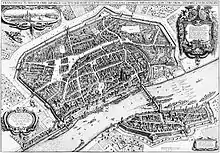 Most of the northern part of the old town was destroyed on 26 June 1719 during the "Great Christian Fire" (eight years earlier to distinguish it from the "Great Jewish Fire" in Judengasse). In the area between Fahrgasse, Schnurgasse and Töngesgasse, 282 people died and 425 houses were destroyed.[11] However, the area was quickly rebuilt on the old, small plots.