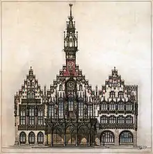 After the decision of the city council to demolish the Technical City Hall,[8] A technical and emotional discussion about the reconstruction of this old town district began when almost the entire historical nucleus of the city between the cathedral and the Römer became an open space again. In 2007, the factions of the CDU and Bündnis 90 / Die Grünen, ruling since the municipal elections in Frankfurt in 2006, reached an agreement with the FDP and the free voters against the votes of the SPD and Die Linke for the new construction of the Dom-Römer area[9] on a compromise.