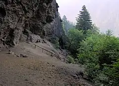 The Alum Cave Trail is the shortest and steepest of the five trails leading to the Le Conte massif, which contains five separate peaks in all, the highest of which has an elevation of 6,593 feet (2,010 m). Because of its short length and scenery (it is often considered Le Conte's most scenic route)[3] it is the most common footpath for hikers seeking to reach the summit of Le Conte.[4]