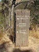 Alum Rock Park, in the Alum Rock district of San Jose, California, is California's oldest municipal park, established in 1872 but serving as public land since the pueblo was established in 1777. Located in a valley in the Diablo Range foothills on the east side of San Jose, the 720 acre (2.9 km2) park offers 13 miles (21 km) of trails, varying from fairly level along Penitencia Creek to sharp switchbacks climbing to the ridges to the South Rim Trail and the North Rim Trail. The narrow floor of the valley includes a visitor center, a small museum/animal rehab facility, picnic areas, playgrounds, lawns, sand volleyball pits, mineral springs, lush plant life, woodlands, creek play opportunities, and occasional group camping.