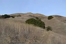 The north-facing slopes are dominated by trees, including coast live oak, California bay laurel, madrone, and California buckeye. On the valley floor, in the moist areas along Penitencia Creek, bigleaf maple, white alder, and western sycamore provide shade for the abundant ferns.