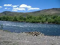 The landscape around Aluminé is mountainous with clear water lakes and creeks. The prevailing vegetation includes Araucaria araucanas, coihue and mallín.[6] Mammal species such as mountain lions, pudú and South Andean deer inhabit the area. The bird species include the Andean Condor, black-necked swan and Darwin's rhea.[7] A variety of trouts, such as rainbow trout and brown trout, along with perches and other species, are common in the bodies of water.[8]