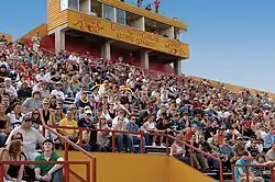 Alumni Stadium is a multi-purpose stadium at the University of Guelph in Guelph, Ontario, Canada. It is home to the Guelph Gryphons varsity football team. It was built in 1970, and has a fixed seating capacity of approximately 8,500, including fixed seating and the grass hill on the east side of the stadium. On October 27, 2011, it was announced that the stadium would undergo an $18 million expansion and renovation that will bring fixed seating capacity up to 7,500. It was also announced that an eight-lane track would be installed as well as synthetic turf for the field.[1] In addition to football the Gryphons soccer teams also play their home games at the stadium.
