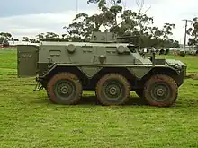 The FV603 Saracen is a six-wheeled armoured personnel carrier designed and produced by Alvis since 1952. It has been used by a variety of operators around the world, and is still in use in secondary roles in some countries. The Saracen became a recognisable vehicle as a result of its part in Operation Banner in Northern Ireland as well as for its role in the South African government's enforcement of apartheid.[2]
