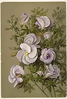 The large flower, highly variable in colour, is similar to that of Hibiscus. It was previously placed in that genus, and is commonly named lilac hibiscus and blue hibiscus. It is widely cultivated as a flowering plant for the garden. Previously published varieties and cultivars are no longer formally recognised.