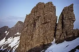 Am Basteir (Scottish Gaelic: Am Bàisteir, 'the baptizer')[2] is a mountain peak in the northern Cuillin range on the Isle of Skye in Scotland. It is 934 metres (3,064 feet) high and classed as a Munro. It forms a narrow blade of rock, which bears comparison with the Inaccessible Pinnacle in the same range.