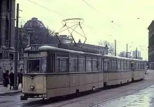 Am Kupfergraben has been used by trams since the 1930s, initially only as the terminus of line 75. Since 1997, tram lines M1 and 12 have been running on the street between Dorotheenstraße and Georgenstraße.