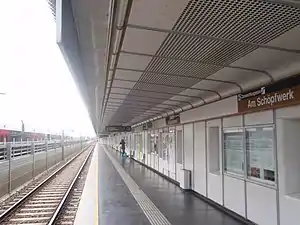 Am Schöpfwerk is a station on U6 of the Vienna U-Bahn.[1] It is located in the Meidling District. It opened on 15 April 1995 as part of the section between Philadelphiabrücke and Siebenhirten.[2]