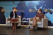 Amanda Ripley and poet Pádraig Ó Tuama at the United States Institute for Peace in 2023