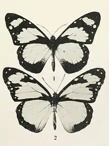 | Amauris nossima figure 1, A. n. var. conjuncta figure 2 | |