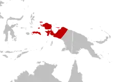 The Amboina sail-finned lizard is found in wooded habitats near water in New Guinea and the central Moluccas.[4] Although it has been reported from the Philippines and Sulawesi,[1] a genetic study has shown that all in the former country (even southern ones, which have caused confusion in the past[1]) are Philippine sailfin lizards H. pustulatus, while genetic and morphological studies have shown that individuals from the latter island belong to two separate species to which the names H. celebensis and H. microlophus are available.[4][5] Adult male Amboina sail-finned lizards have outer edges of the eyes that are medium-dark clear blue and no nose crest, which are some of the features that separate them from the Sulawesi species.[4]