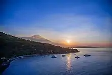 Many beaches in the area, including Amed Beach, have black volcanic sand as they are close to Mount Agung, Bali's largest volcano.[2]
