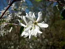 Amelanchier ovalis, commonly known as snowy mespilus[2] (a name which is also attached to the related A. lamarckii) or serviceberry, is a deciduous shrub in the family Rosaceae. Its pome fruits are edible and can be eaten raw or cooked. The species is native to central and southern Europe, as well as North Africa and the Middle East.[3][4][5]
