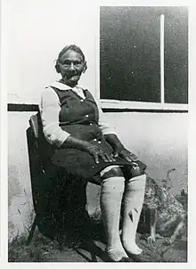 Despite this description as being part of the Bradshaw family, it is elsewhere recorded (by Gordon Briscoe) that she did not live with them but worked as a "day girl" and lived at a camp on the opposite side of the river. Briscoe describes that she would go to work each day, shower and dress in clean clothes as an unpaid domestic servant and then, at the setting of the sun, leave her clean clothes and return to her camp in rags.[2]