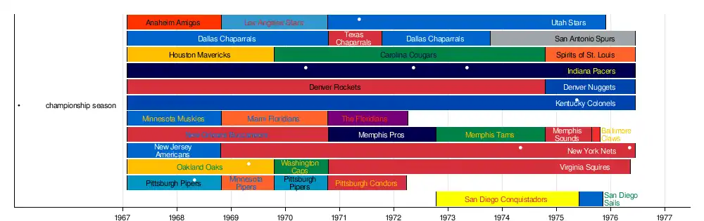 | Houston Mavericks Carolina Cougars Spirits of St. Louis |