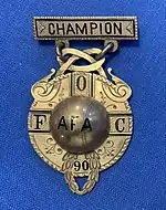 The American Football Association Challenge Cup (also known as the American Association Cup or simply American Cup) was the first major U.S. soccer competition open to teams beyond a single league. It was first held in 1884. In the 1910s, it gradually declined in importance with the establishment of the National Challenge Cup. It was last held in 1924. The trophy was made by Tiffany & Co. and is described as "a very elegant sterling silver trophy. It is a vase about thirteen inches high surmounted by a Roman athlete. On either side is a foot ball and goal post, while in front on a large shield is the inscription".[1]