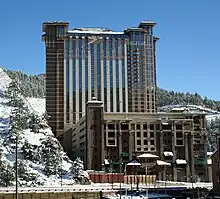 The casino opened on December 20, 2001, as the Black Hawk Casino by Hyatt.[4] At opening, it was the largest casino in Colorado, with 57,000 square feet (5,300 m2) of gaming space, containing 1,332 slot machines, 16 blackjack tables and 6 poker tables.[4][5] The casino was designed as the first phase of a destination resort, with later additions planned to include a 350-suite hotel tower, a convention center, nightclubs, a spa, and a mountaintop recreation park connected to the casino by a gondola lift.[6][7]