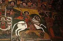 A mural depicting Saint George in the church of Debre Berhan Selassie in Gondar.