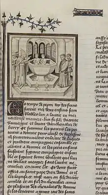 Amis et Amiles is an old French romance based on a widespread legend of friendship and sacrifice. In its earlier and simpler form it is the story of two friends, one of whom, Amis, was sick with leprosy because he had committed perjury to save his friend. A vision informed him that he could only be cured by bathing in the blood of Amiles's children. When Amiles learnt this he killed the children, who were, however, miraculously restored to life after the cure of Amis.[1]