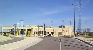 The Amistad Dam Port of Entry is a port of entry into the United States from Mexico. It was built when Amistad Dam was completed in 1969. The Dam was a bi-national effort to establish flood control on the Rio Grande and provide sources of water. Although US Department of Transportation statistics combine traffic counts with Del Rio Texas Port of Entry, approximately 65,000 vehicles crossed the dam into the US in 2005.[1] The border station was rebuilt by the US Army Corps of Engineers in 2012.[2]