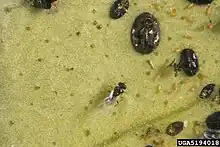 | Adult wasp with eggs, nymphs and pupae of citrus blackfly. | |
