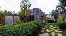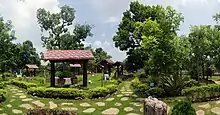 Amkhoi Fossil Park is a fossil park located near Illambazar in the Birbhum District of West Bengal, India. It contains fossilized wood 15 to 20 million years of age and is officially recognized by the State Forest Department of West Bengal.[1] In 2016 while digging a pond the villagers of Amkhoi village, near Ilambazar, found some large bone-like structures. Later it was established that the bone-like structures were actually wood fossils. Fossilized or petrified wood is often considered as semi-precious ‘stones’ and often used in jewellery — fetching a good market value.[2] As the word spread it attracted fossil hunters from far and wide. To prevent the vandalism and theft of fossils the forest department decided to convert the area into a fossil park.[3] In 2017 - 18 the park came into existence and was called Amkhoi Wood Fossil Park. The aim of the park was to create awareness about fossils among students and common people, and also try to help scholars in their research.[2] It is the only fossil park of West Bengal state and has an area of 10 hectares.[4] The fossils are laid out in a manicured lawn surrounded by pathways separated by hedge walls. Bilingual boards narrate the details of not only the fossils, but also about the process of fossilization.[2]