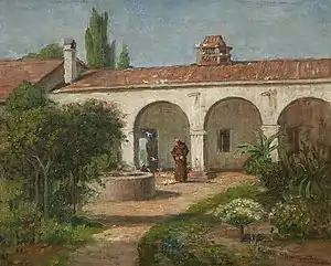 From 1882 to 1885, they lived in Newburgh, then moved to California.[2] At first, they lived in San Francisco then, around 1889, settled in San Diego; building a house where they lived until 1910, when all the children had left home. Carrie died in 1914.[1] During this time he maintained his ties to Buffalo, however, and stopped there whenever he was going to or from Europe. He also held frequent exhibits at the Albright-Knox Art Gallery, which had been created by members of the Academy.