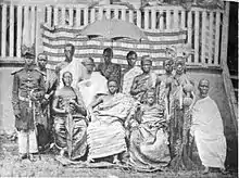 Nana Amoako Atta I, (born Kwasi Panin; 1853– 2 February 1887), was the paramount chief of Akyem Abuakwa in nineteenth century southern Ghana.[1][2][3] Locally, his position is known as the Okyehene or Omanhene. He ruled the traditional kingdom from July 1866 to 1880 and from 1885 to 1887. After the Sagrenti War of 1874, the British declared Akyem Abuakwa a colonial possession, legally called a ‘protectorate’, as part of the Gold Coast.[4] This development led to a clash between the old traditional Akan culture and the imposition of the new Western Christian political order.[1][2][5]