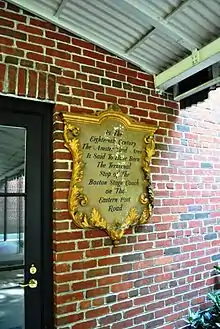 The buildings that originally comprised Amster Yard were built in the late 19th century. According to tax records, the lots surrounding the yard were owned by John Molloy in 1870, when he constructed a "one-story carpenter shop" on the northern side of the yard.[12] The site also contained a 19th-century boarding house, a station of the Boston Post Road, and a commercial yard.[26] The region was reportedly the terminus of the Boston Post Road during the 18th century.[12][27]