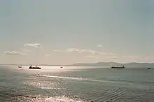 Amur Bay (Russian: Амурский Залив, Amurskiy Zaliv), a major bay within Peter the Great Gulf of the Sea of Japan, has an approximate length of 65 kilometres (40 miles), a width of 10 kilometres (6.2 miles) to 20 kilometres (12 miles), and a depth of 20 metres (66 feet).[1] It is part of a larger bay formed with Ussuri Bay, to which it is connected by the Eastern Bosphorus, and from which it is separated by the Muravyov-Amursky Peninsula and by the Eugénie Archipelago. The Amba River, Razdolnaya River, Narva River, and Barabashevka River all flow into Amur Bay.
