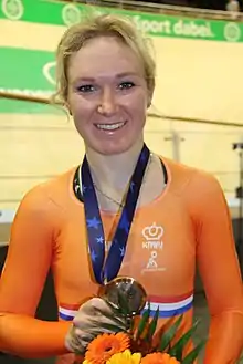 Amy Pieters (born 1 June 1991) is a Dutch professional road and track cyclist, who is contracted to ride for UCI Women's WorldTeam SD Worx.[5] She was a member of the Dutch team that finished sixth at the 2012 Summer Olympics in the team pursuit (together with Ellen van Dijk, Kirsten Wild and Vera Koedooder).[6]