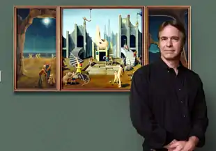 Artist T. E. Breitenbach with The Jim Morrison Triptych that was supposed to be the cover art of An American Prayer.