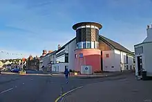 An Lanntair (Scottish Gaelic: [əˈl̪ˠãũn̪ˠt̪ɛɾʲ]) is an arts centre in the town of Stornoway in the Outer Hebrides of Scotland. The centre is home to a cinema, and art gallery. Previously located in the Town Hall, An Lanntair moved to its current new building overlooking the harbour in September 2005. This building features a 50-seater restaurant, art gallery, shop, and auditorium seating over two hundred. The auditorium houses the first cinema in Stornoway since 1995.