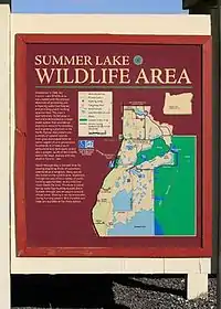15. 1 2 3 4 "Summer Lake Wildlife Area" Archived 2016-03-04 at the Wayback Machine, Basin and Range Birding Trail, Bureau of Land Management in cooperation with the Modoc National Wildlife Refuge and the Lake County Chamber of Commerce, Alturas, California, 19 May 2010.