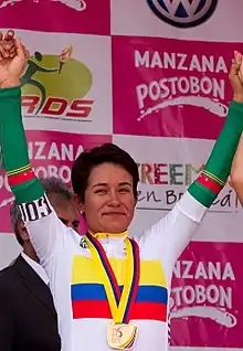 Ana Cristina Sanabria Sánchez (born 2 May 1990) is a Colombian professional racing cyclist,[2] who rides for UCI Women's Continental Team Colombia Tierra de Atletas–GW–Shimano.[3] She won the Colombian National Time Trial Championships four times (from 2015 to 2017 and 2020), and the Vuelta a Colombia Femenina Oro y Paz in 2016 and 2017.[4]